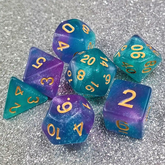 Turquoise & Purple Cosmos Dungeons & Dragons Dice Set