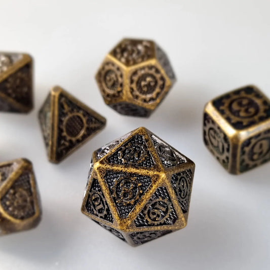 Ancient Dwarven Cogs & Gears Metal DnD Dice Set