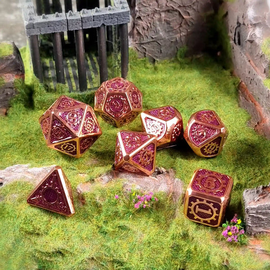 Copper Purple Cogs & Gears Metal DnD Dice Set